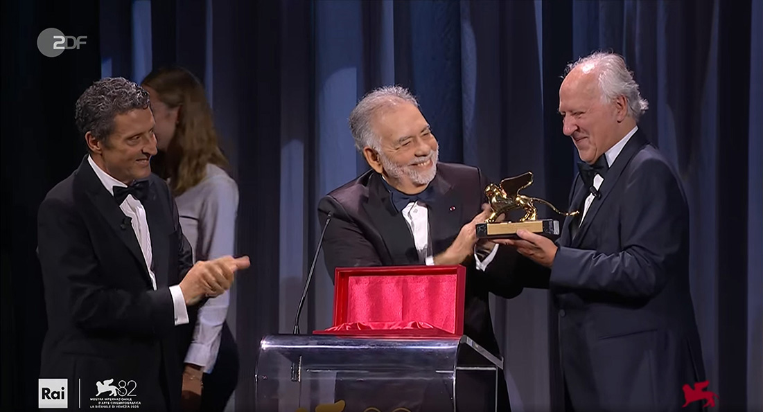 Am 27. August 2025 erhielt Werner Herzog beim Eröffnungsabend der 82. Internationalen Filmfestspiele von Venedig den Goldenen Löwen für sein Lebenswerk. Die Auszeichnung wurde von Francis Ford Coppola überreicht.